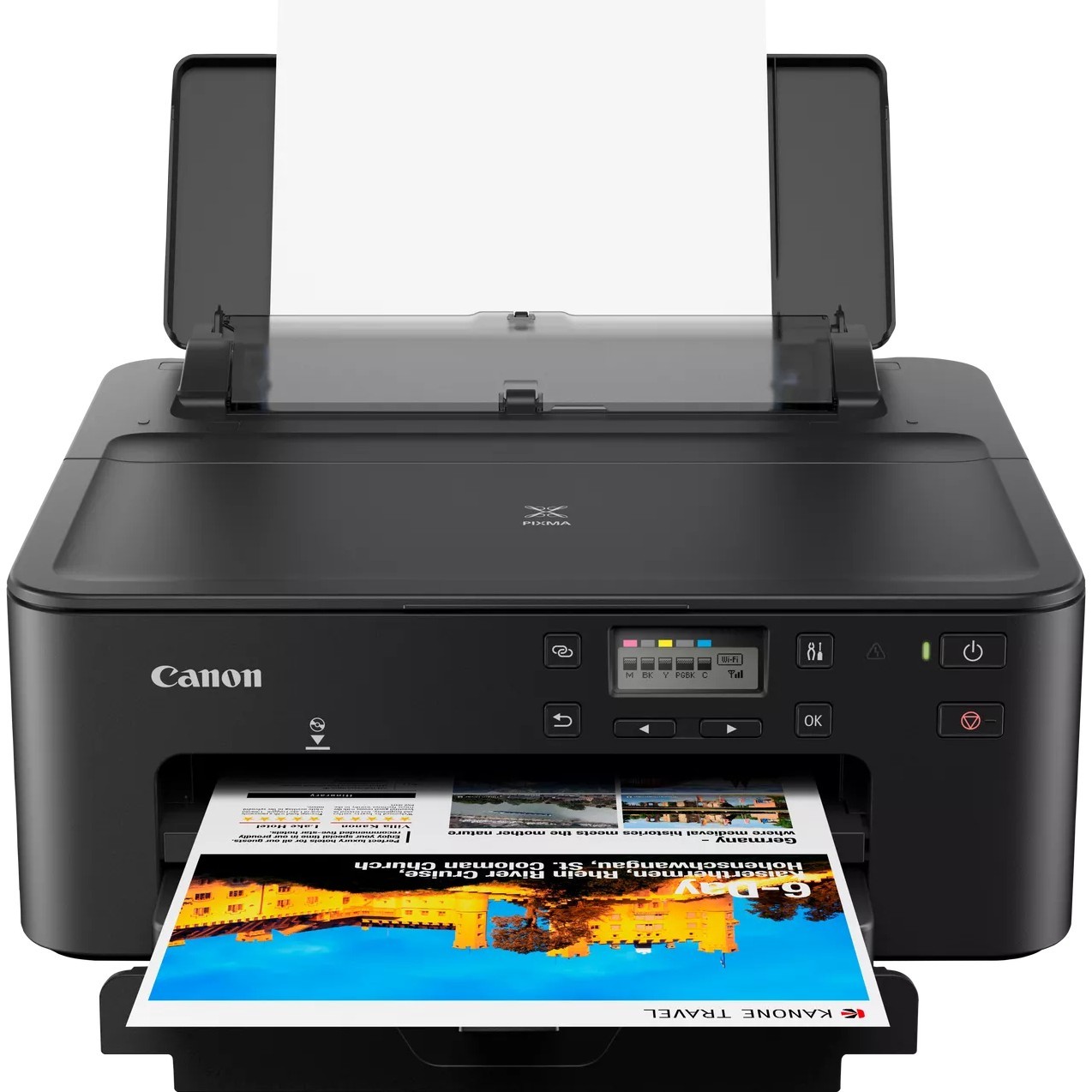 Canon PIXMA TS705a inkjet printer with A4 printing, Ethernet and Wi-Fi connectivity, duplex printing, and 350-sheet capacity.