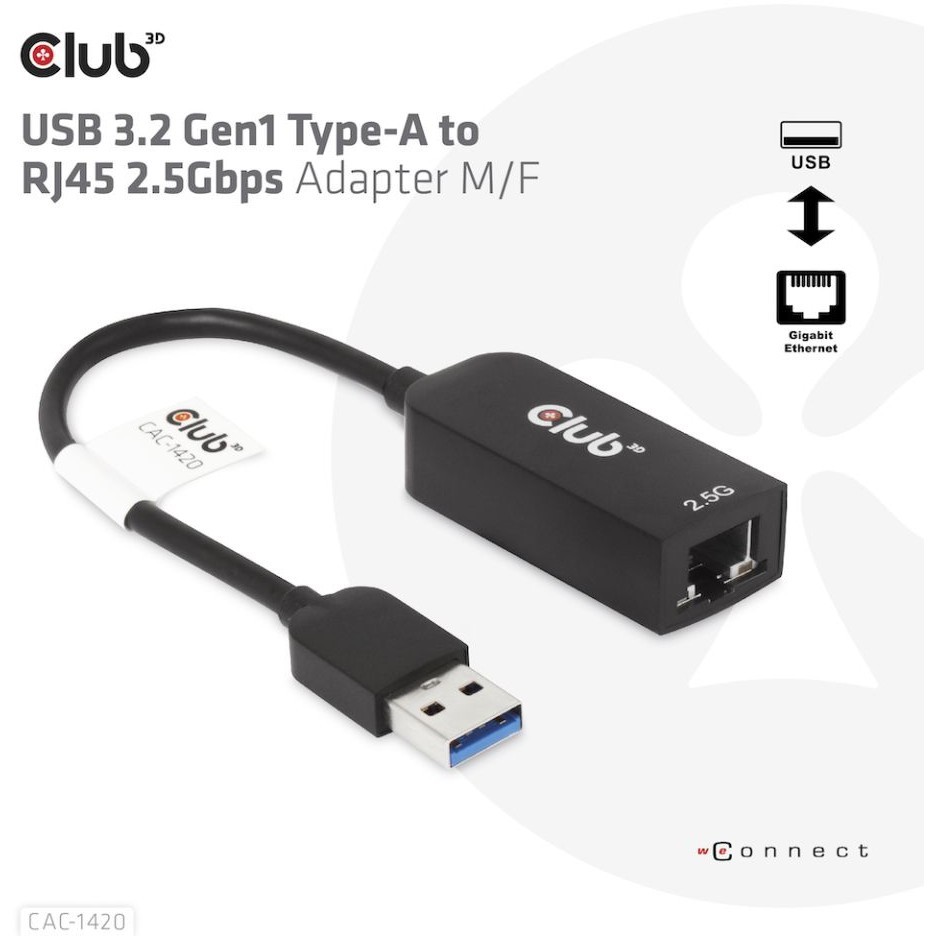 Club3D USB 3.2 Type A to RJ45 2.5Gb Ethernet adapter.