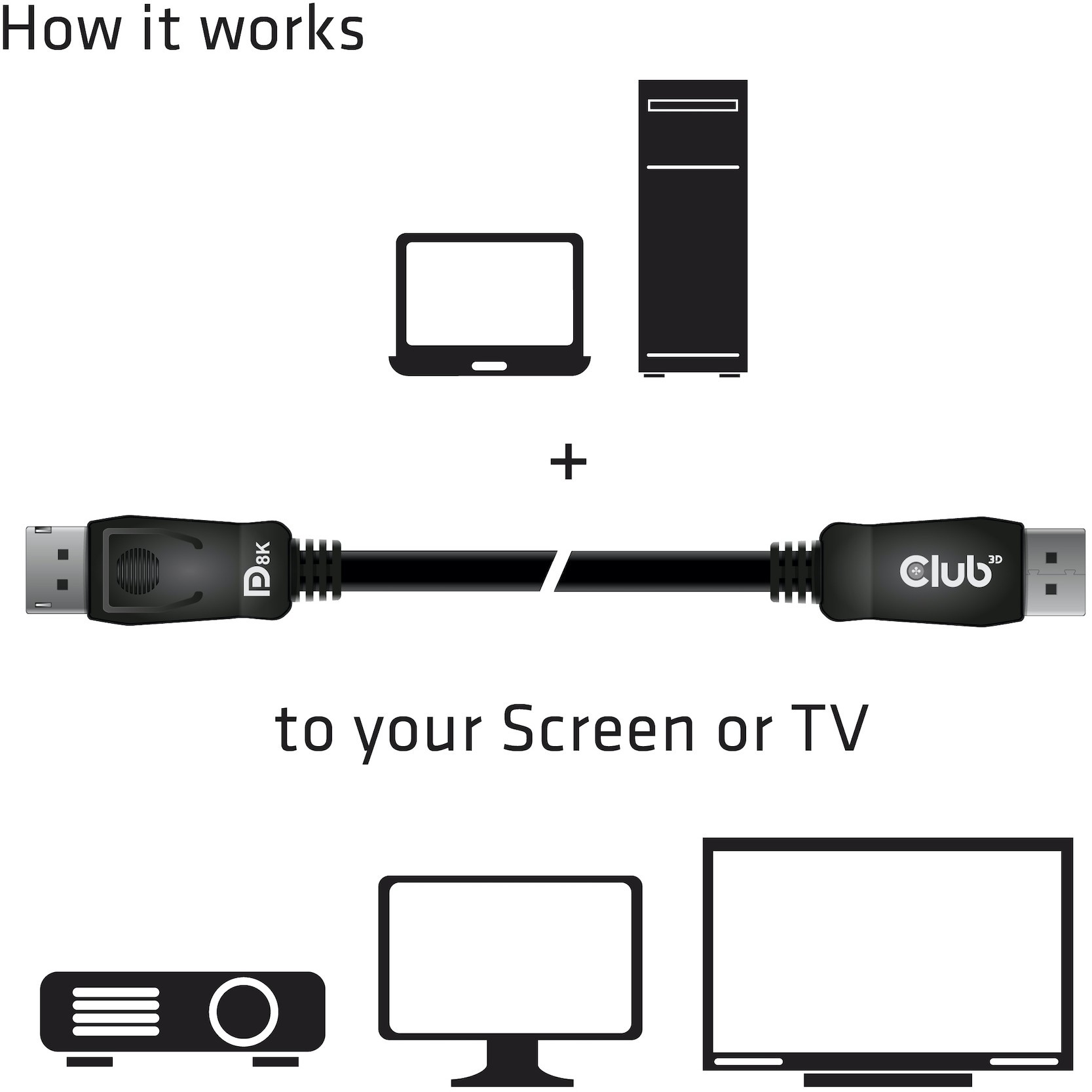 Club3D DisplayPort Cable - 1.4 HBR3 32.4Gb s 2m 8K60Hz St St Polybag