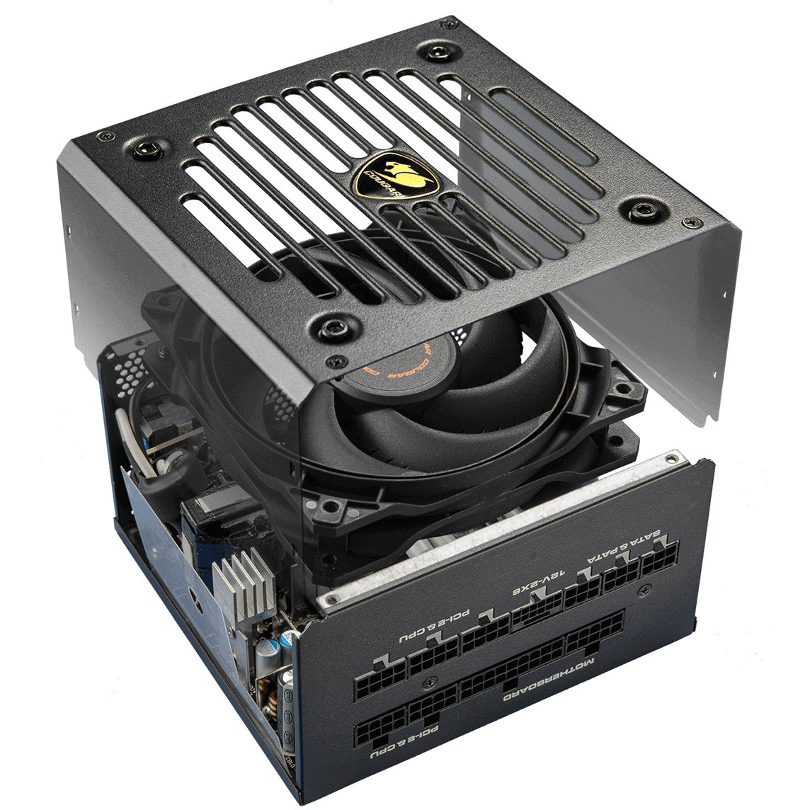 COUGAR Gaming CGR GEXP-750. Total power: 750 W. AC input voltage: 100 - 240 V. AC input frequency: 50/60 Hz. Motherboard power connector: 20+4 pin ATX. Motherboard power cable length: 61 cm. SATA power cable length: 400.520.640.760 mm. Purpose: PC. Power supply unit (PSU) form factor: ATX. 80 PLUS certification: 80 PLUS Gold. Product colour: Black. Cooling type: Active. Fan diameter: 12 cm. Compliance certificates: CE. EAC. Federal Communications Commission (FCC). RoHS. UKCA