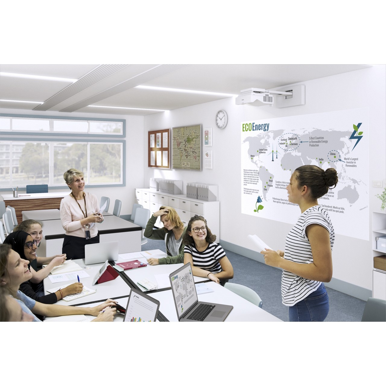 1080p laser projector with 4100-lumen brightness, 16:9, HDMI, VGA, composite video, USB, Wi-Fi, speaker; white