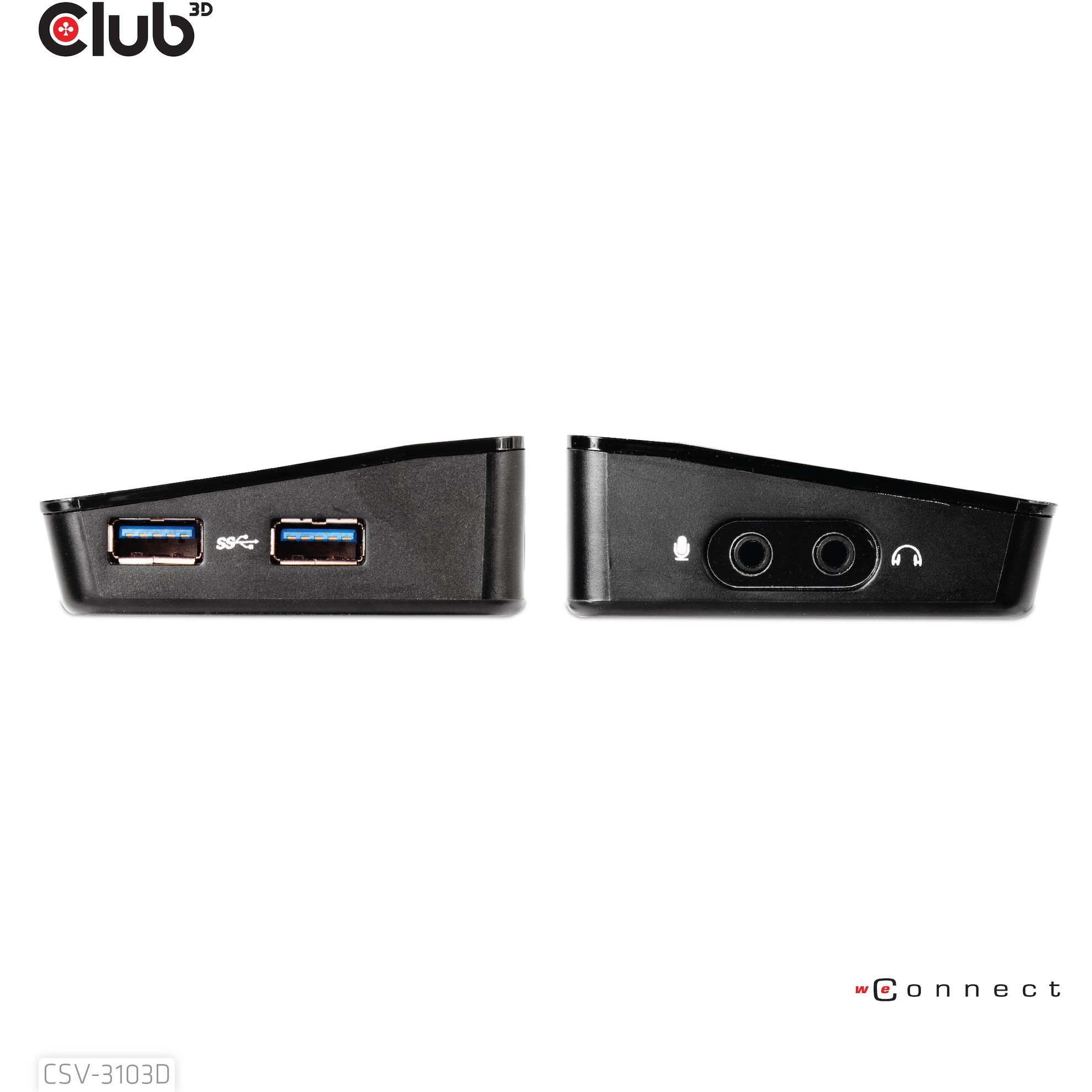 CLUB3D CSV-3103D The Club 3D Universal USB 3.1 Gen 1 UHD 4K Docking station DisplayLink™. Connectivity technology: Wired. Host interface: USB 3.2 Gen 1 (3.1 Gen 1) Type-A. HDMI version: 1.4a. Ethernet LAN data rates: 10.100.1000 Mbit/s. Product colour: Black. Maximum digital resolution: 3840 x 2160 pixels. Maximum analog resolution: 2048 x 1152 pixels. Power source type: AC. Windows operating systems supported: Windows 10 Education. Windows 10 Education x64. Windows 10 Enterprise. Windows 10 Enterprise x64....
