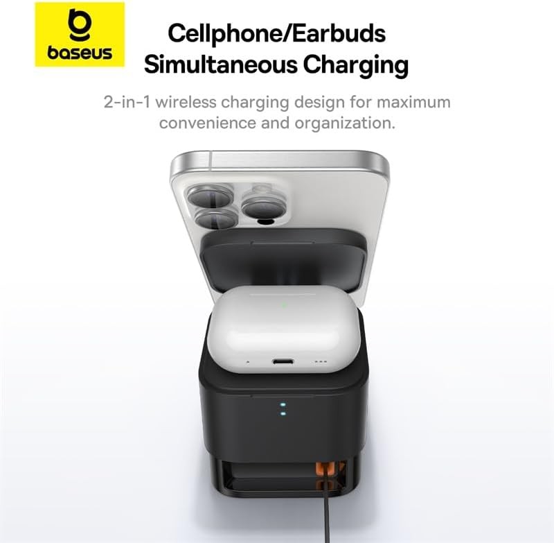 - Magnetic Wireless Charging For Smartphones And Earbuds Simultaneously.