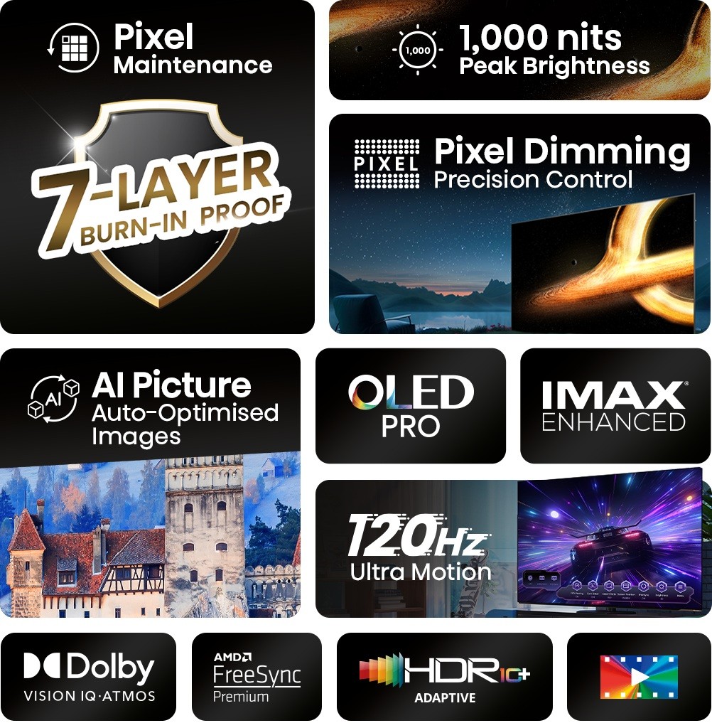 - Others VRR, ALLM, MEMC, Backlight Control, Light Sensing, FreeSync Premium