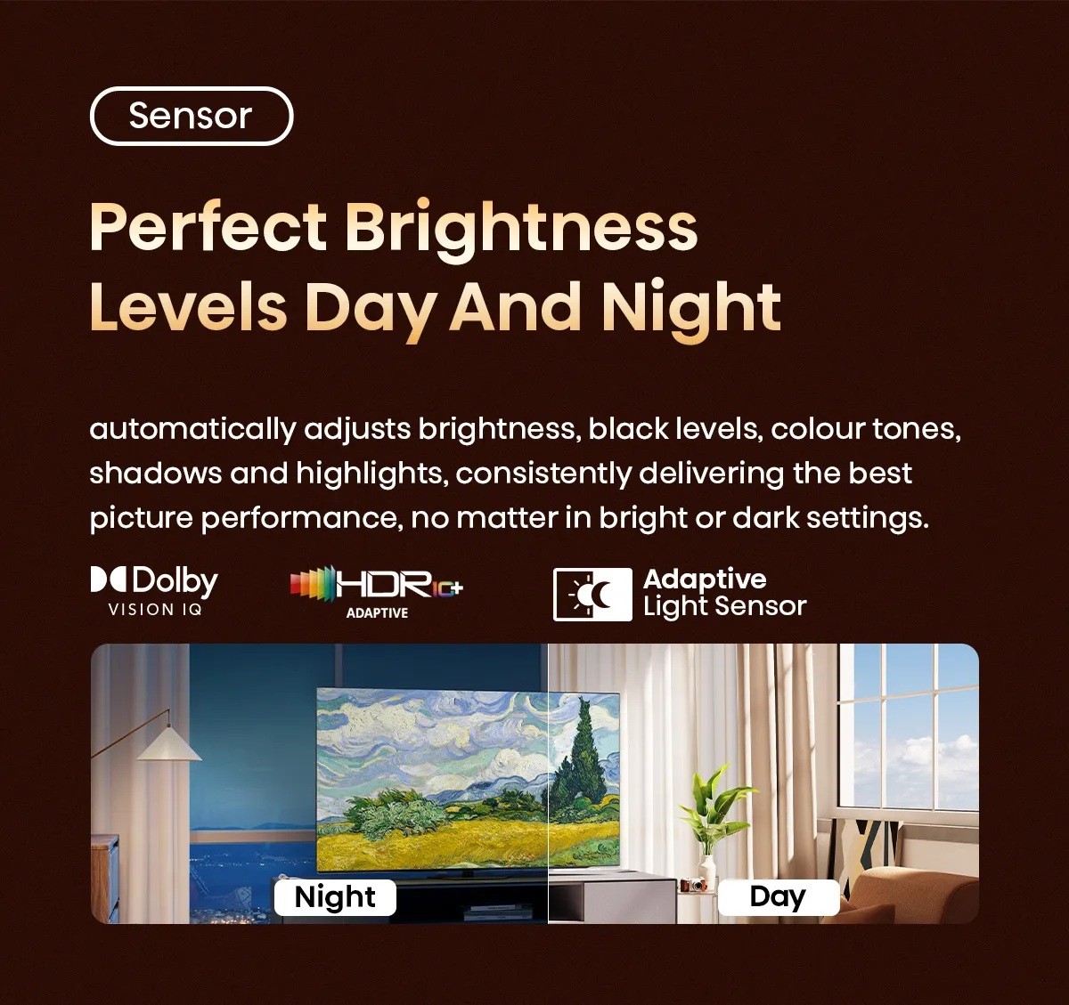- Adaptive Light Sensor, Dolby Vision IQ, HDR 10+ Adaptive In addition to conventional HDR technologies, this TV is also equipped with a light sensor which enables automatic picture adjustment based on ambient lights.