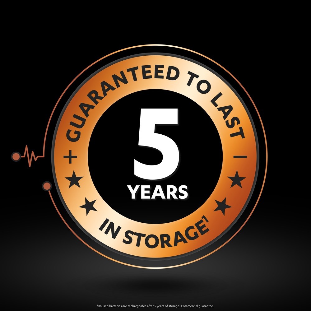 - Unused batteries are rechargeable after 5 years of storage. Commercial guarantee