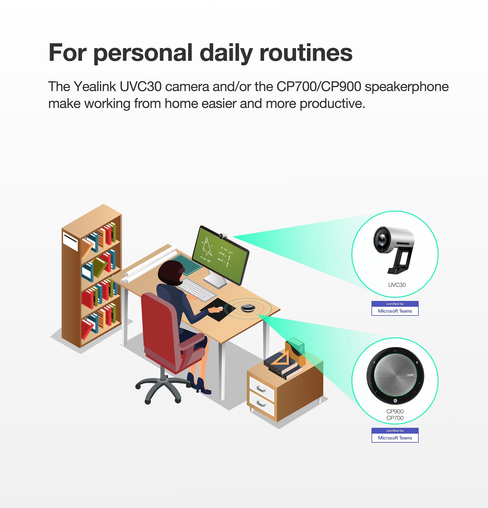 Yealink UVC30 Room is a premium USB camera designed for small and huddle meeting room. Offering sharp image and accurate color reproduction, it provides a vivid face-to-face and remarkable video meeti...