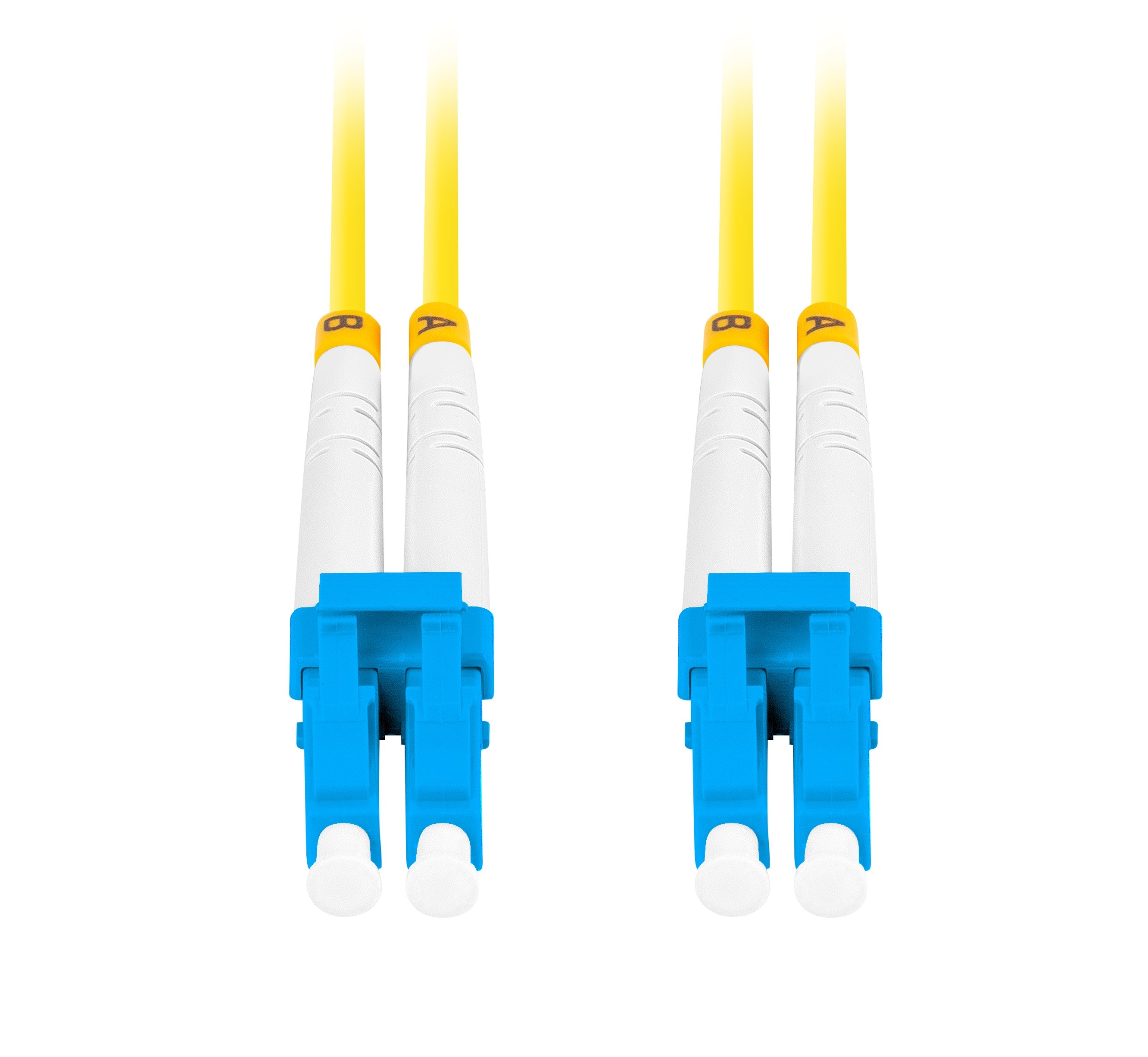LC-LC duplex fiber patch cord with UPC polish, SM 9 125, LSZH, 3.0 m length.