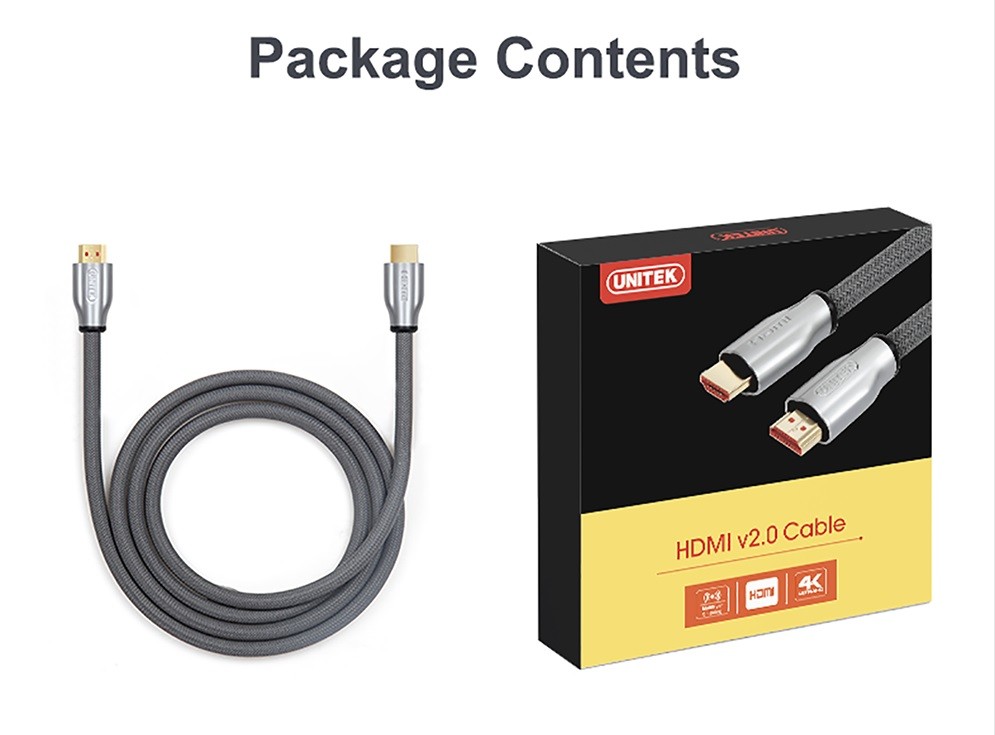 Unitek Premium HDMI 2.0 Braided Cable - Y-C136RGY - Premium HDMI 2.0 Braided Cable 1.0m