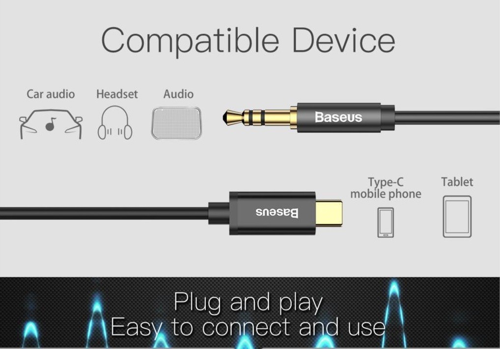 Baseus Yiven Type-C Male to 3.5 Male Audio Cable - 1.2m