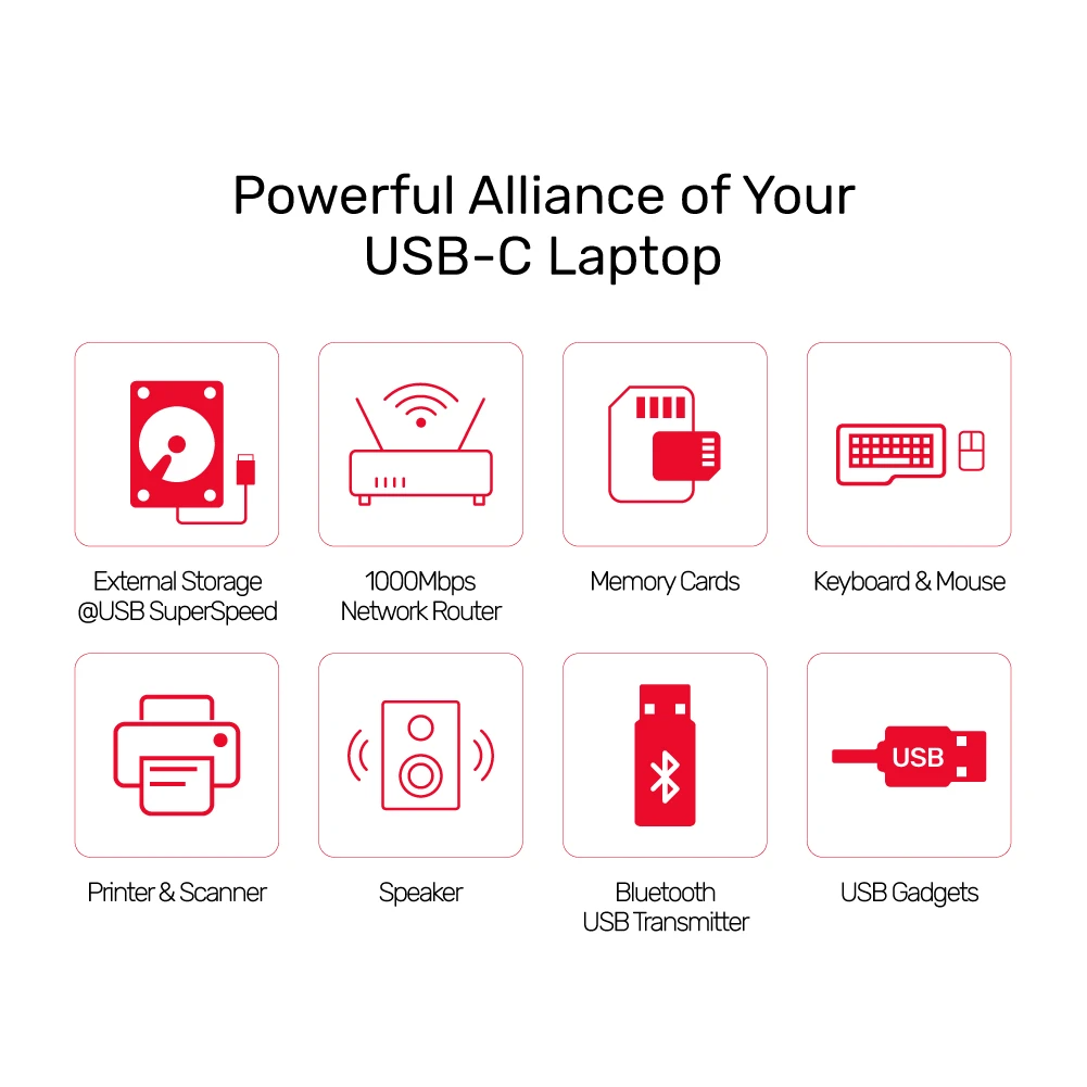 - Bus-powered, no power adapter needed. Plug and play, no driver required.
