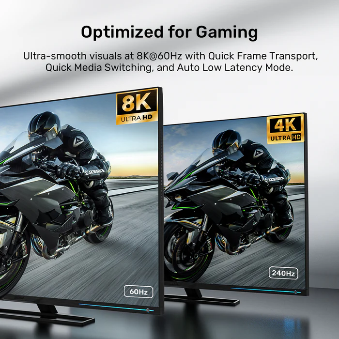 Unitek HDMI 2.1 braided nylon cable supporting 8K60Hz, 4K120Hz, and 2K144Hz.