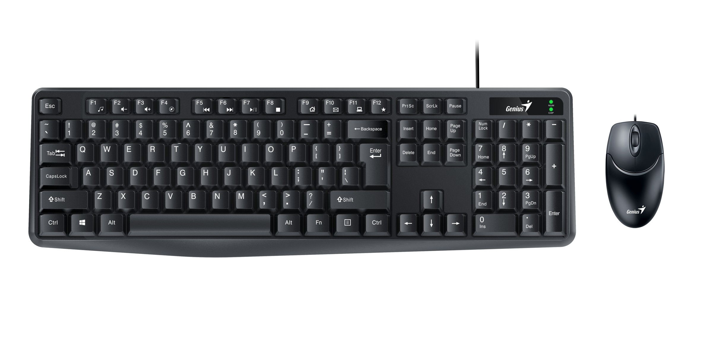 Genius KM-170 wired keyboard-mouse combo with USB connection for office use; comfortable, easy to use.