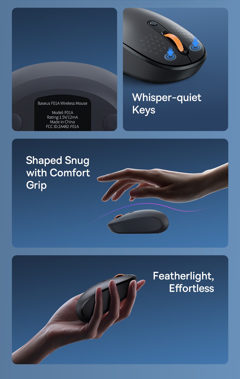 Baseus Wireless Mouse - F01A - Frosted Gray