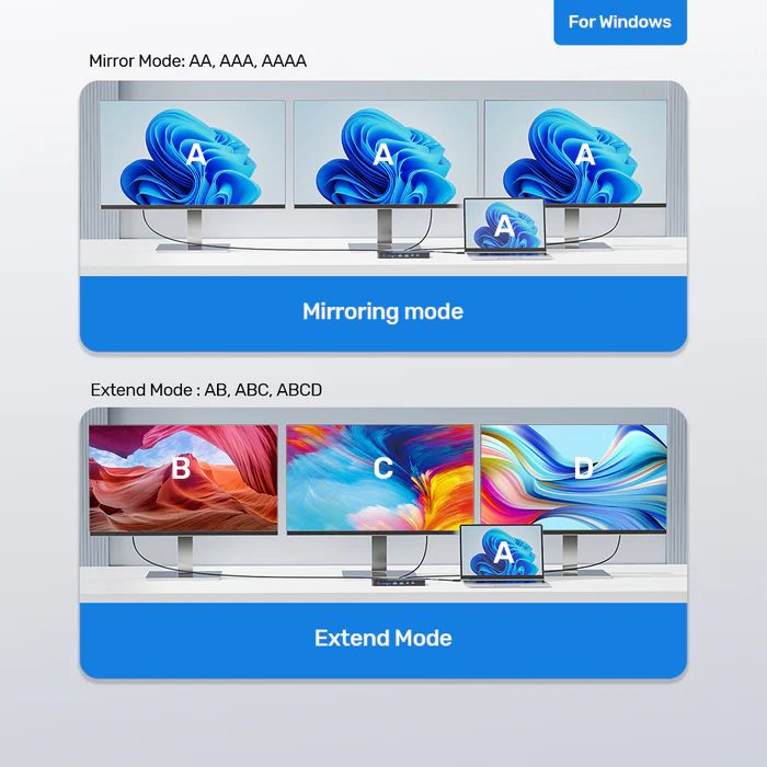 UNITEK USB-C Single 8K/ Triple 4K Docking Station allows you to connect to all the peripherals you need. With 100W Power Delivery and a maximum of three display output, this docking station turns your laptop(s) into a full workstation that can enhance productivity with a clean workspace.