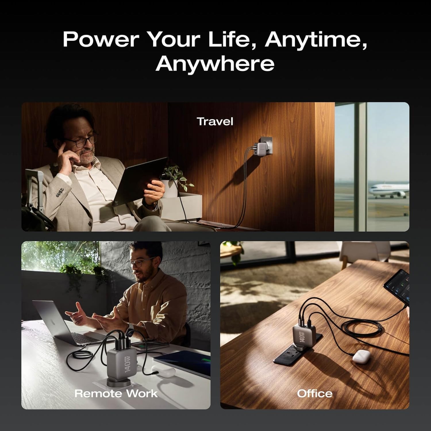 - Portable with GaN Technology: The charger's compact design ensures it seamlessly fits into your setup without taking up space or interfering with other devices. It boasts a size that's about 36% smaller than other 140W USB-C power adapters.