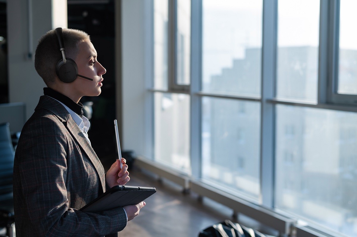 The headset has visible busy indicators built-in both sides. The indicators will automatically glow red when you make a call or attend a meeting, reducing external interference, making you focus