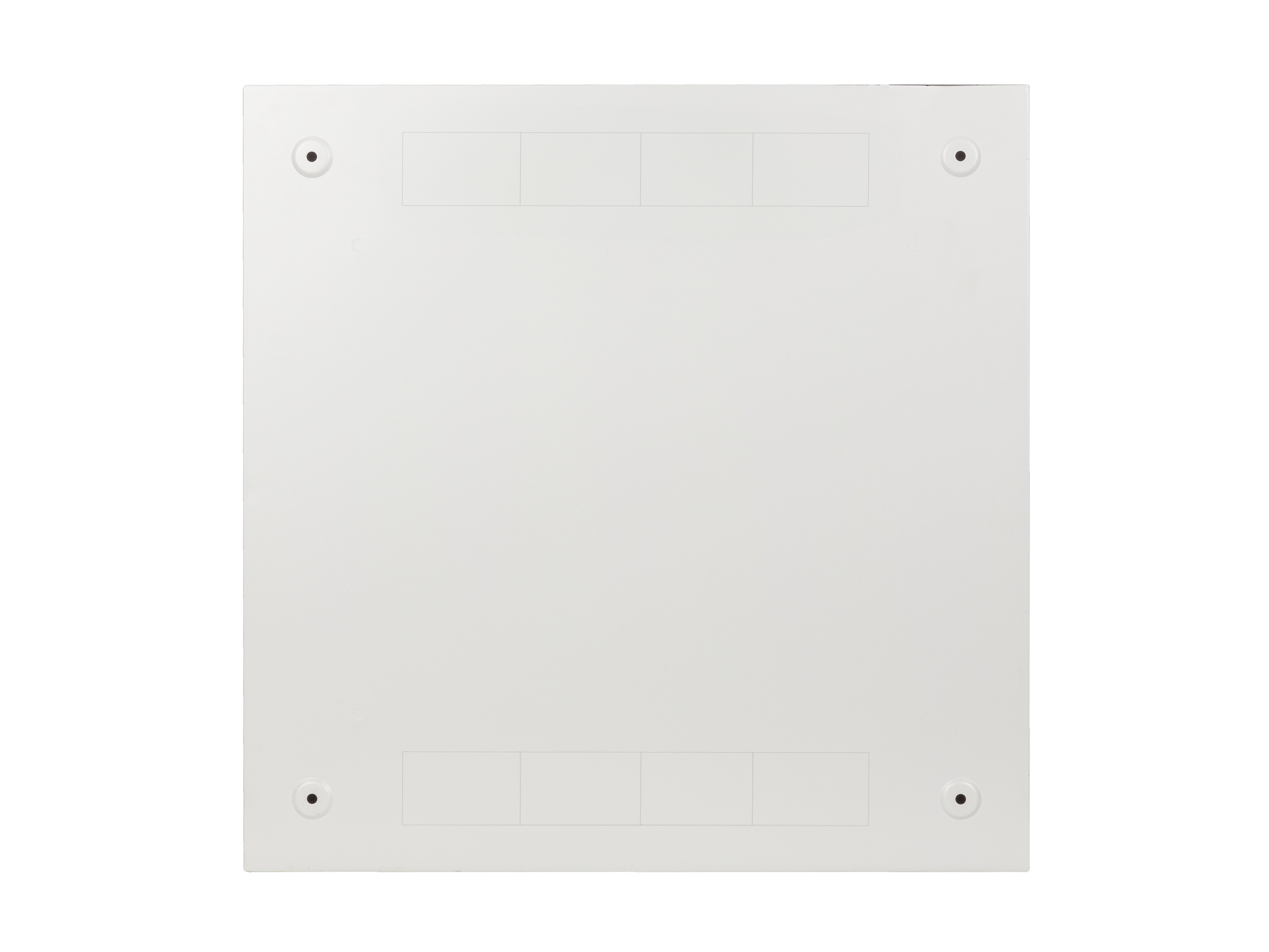 Two mounting rails: vertical 6U and horizontal 3U; back panel with mesh for M6 screws; top and bottom cable holes can be unscrewed.