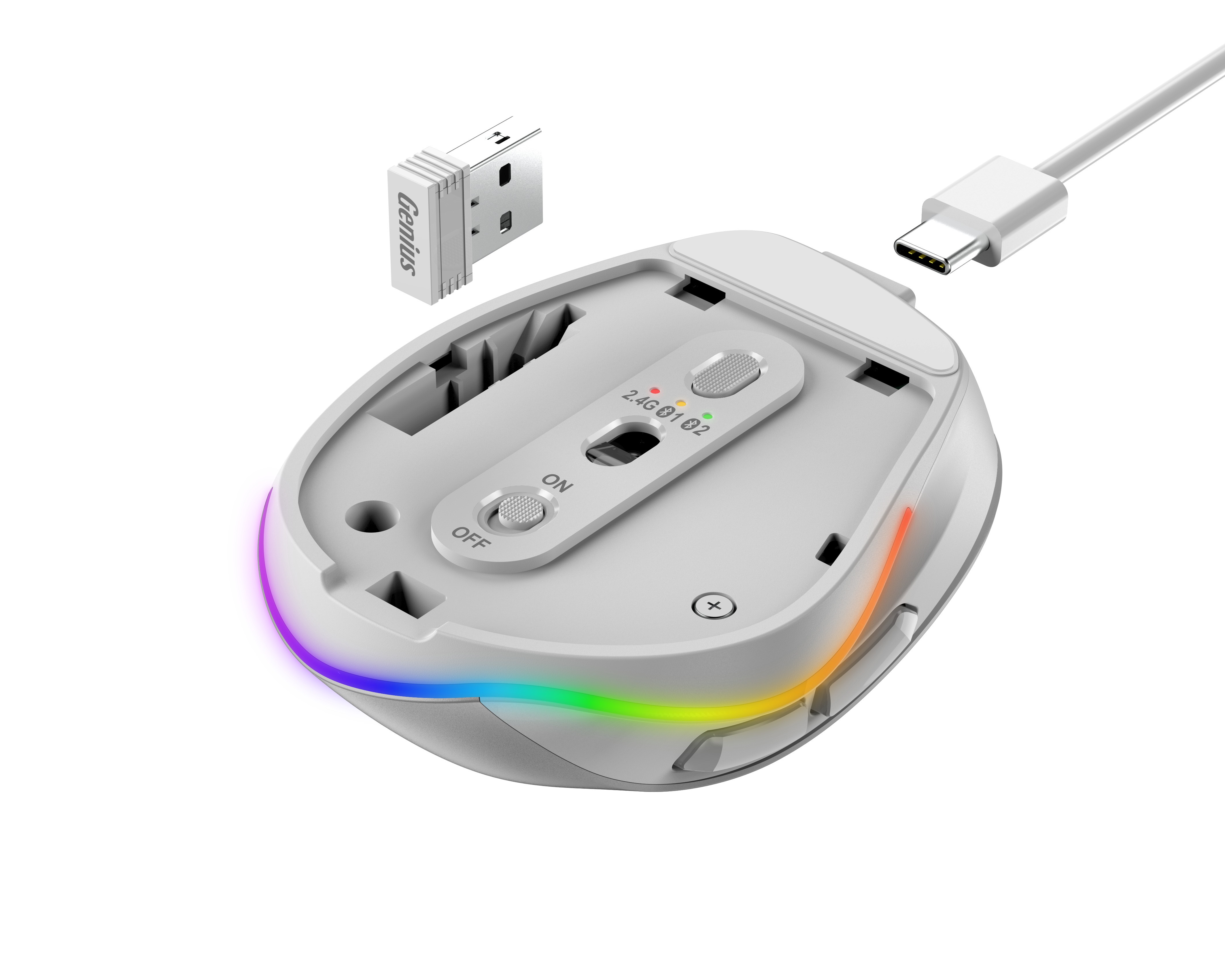 Genius Mouse - 9000S Pro - Wireless+BT Rechargeable Mini RGB Ergo White