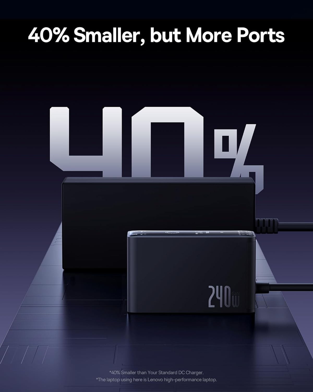 - Compact, 5-Port 240W Desktop Charger: Elevate your workspace with the industry's first 40% smaller charger to combine both round and square tipped AC adapters with USB-C adapters.