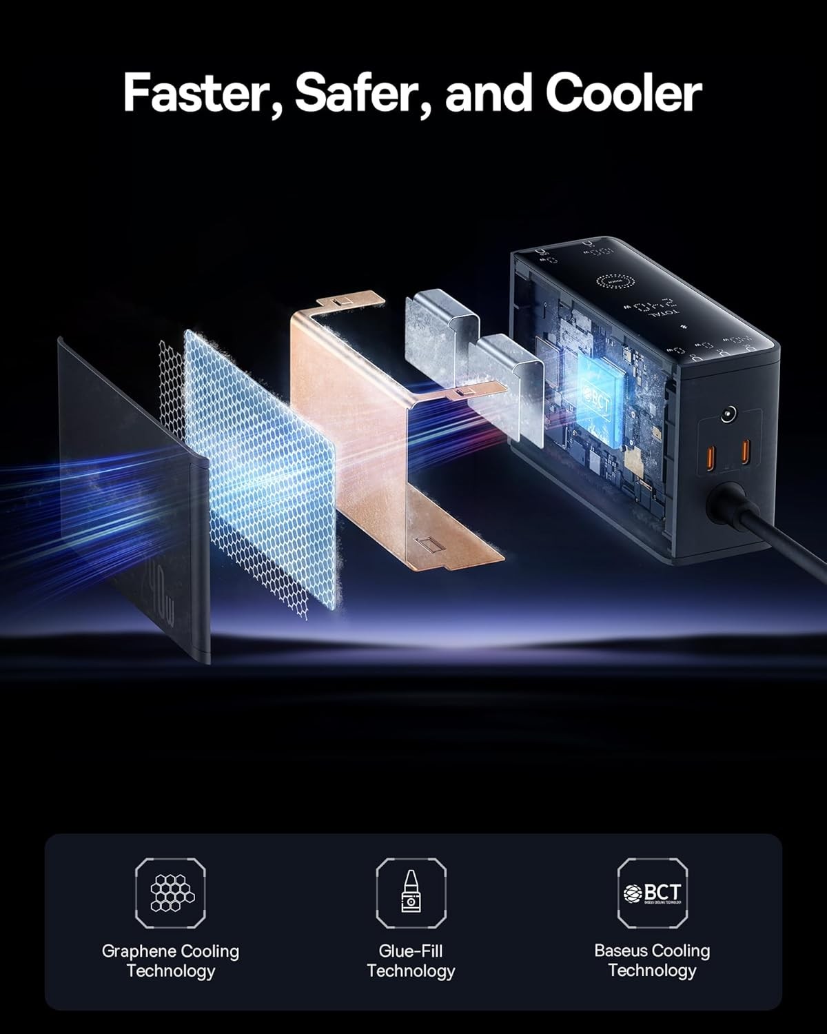 - Intelligent Core with Extensive Safety: Invest in an upgraded Baseus chip with advanced cooling technology that uses glue-fill techniques and Graphene to ensure lasting power while 9 protective charging protocols make your experience faster, safer, and cooler.