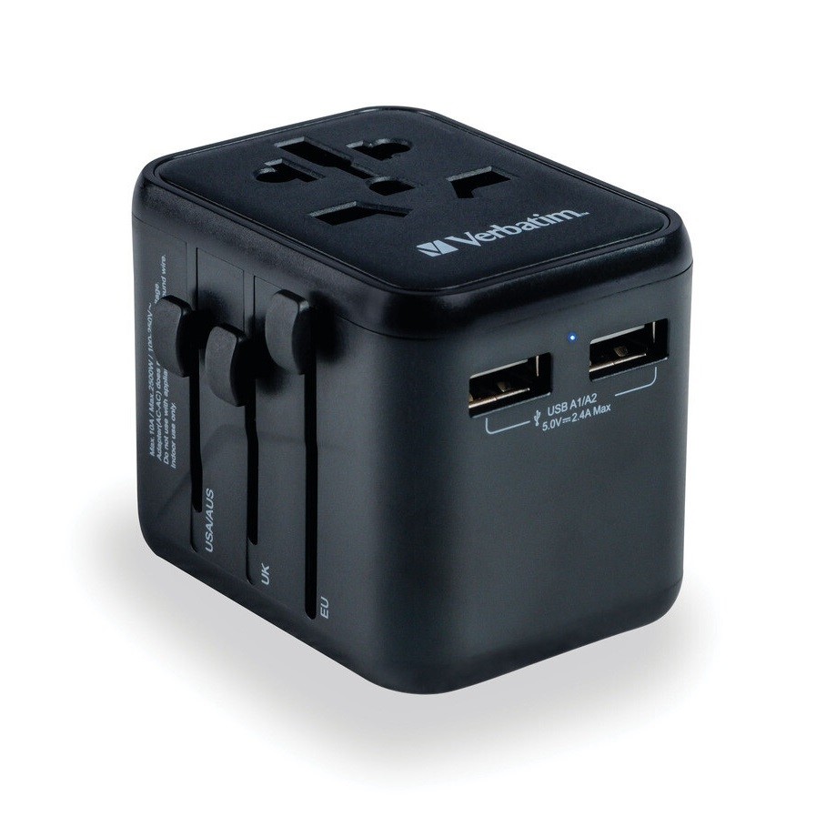 - Verbatim UTA-01 Universal Travel Adapter with 2x USB-A ports