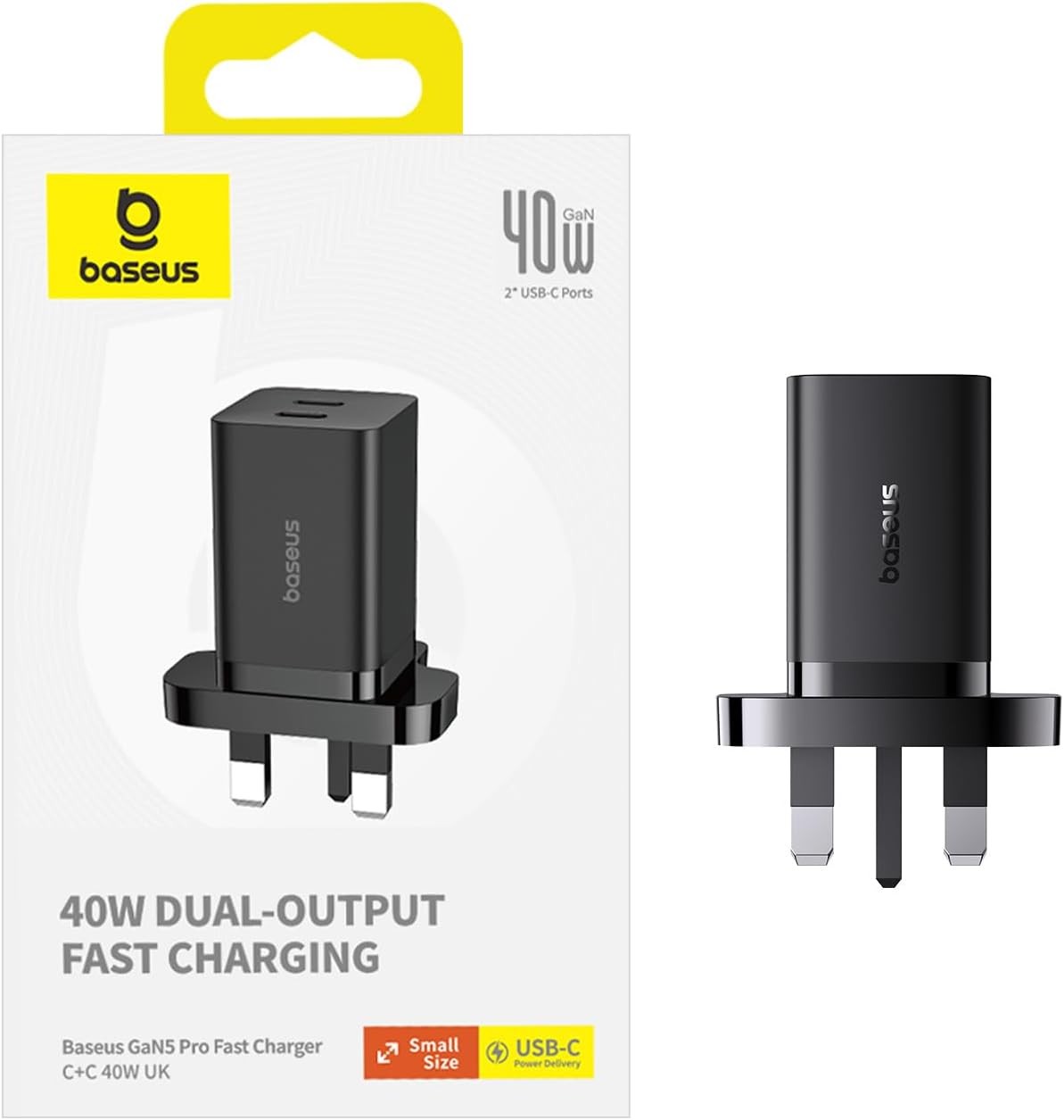 Baseus Charger - GaN5 - Wall 40W USB-Cx2 UK MINI Black