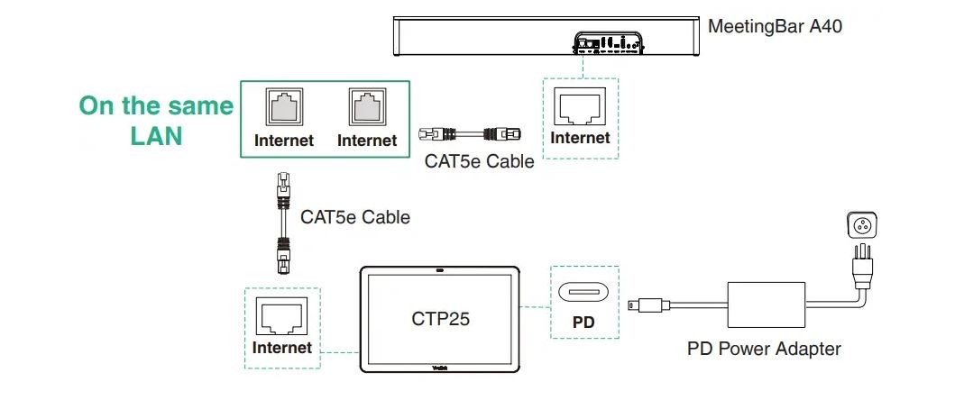 For existing conference rooms where a direct Ethernet connection between the touch console and the meeting bar is not feasible, the devices can be synchronized over the same network subnet. However, signing in on both devices will be required.