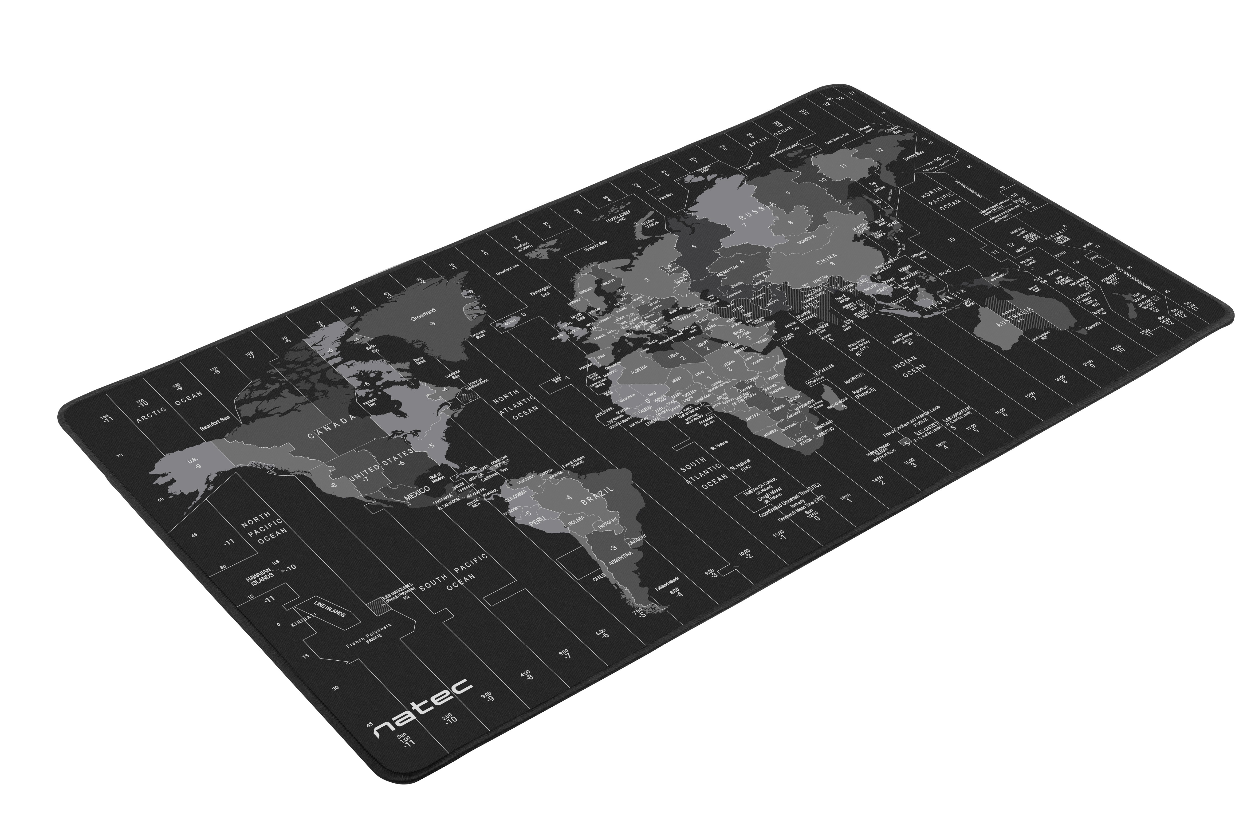 Natec Time Zone Map XL Mousepad - Grey Black