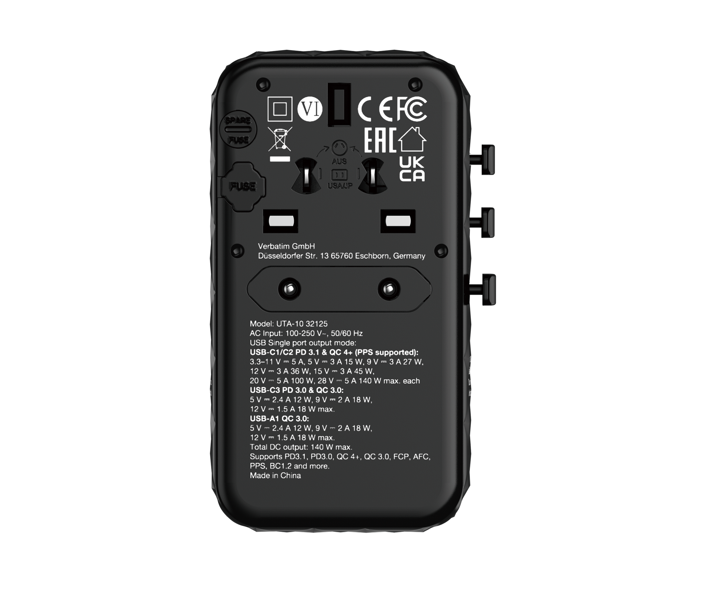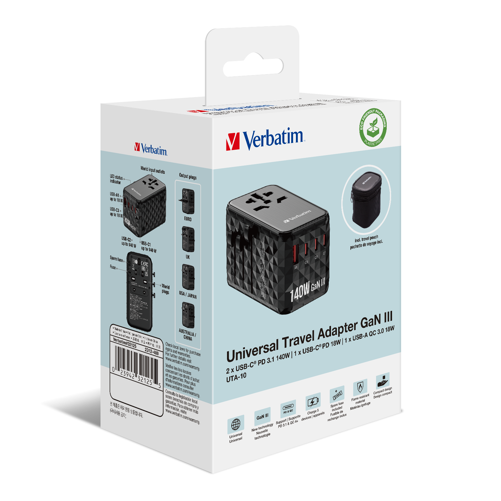 - Verbatim UTA-10 GaN III Universal Travel Adapter
