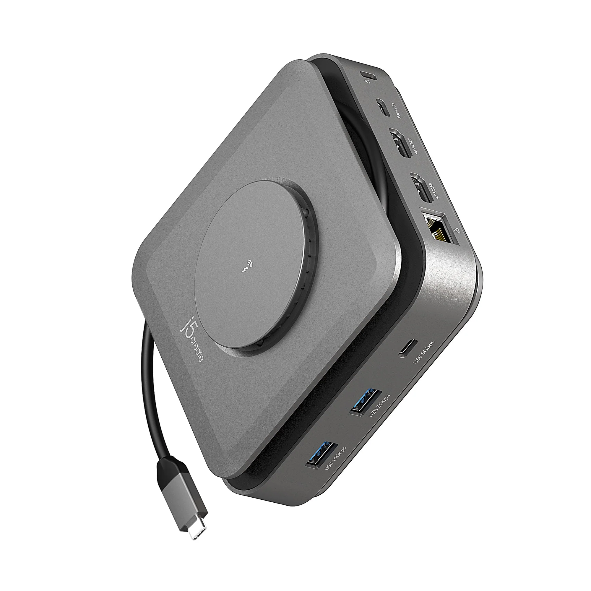 j5create Dock USB-C Dual Display 4K MST MacBookM3 HDMI RJ45 SD USB PD + Wireless Charger JCD3199