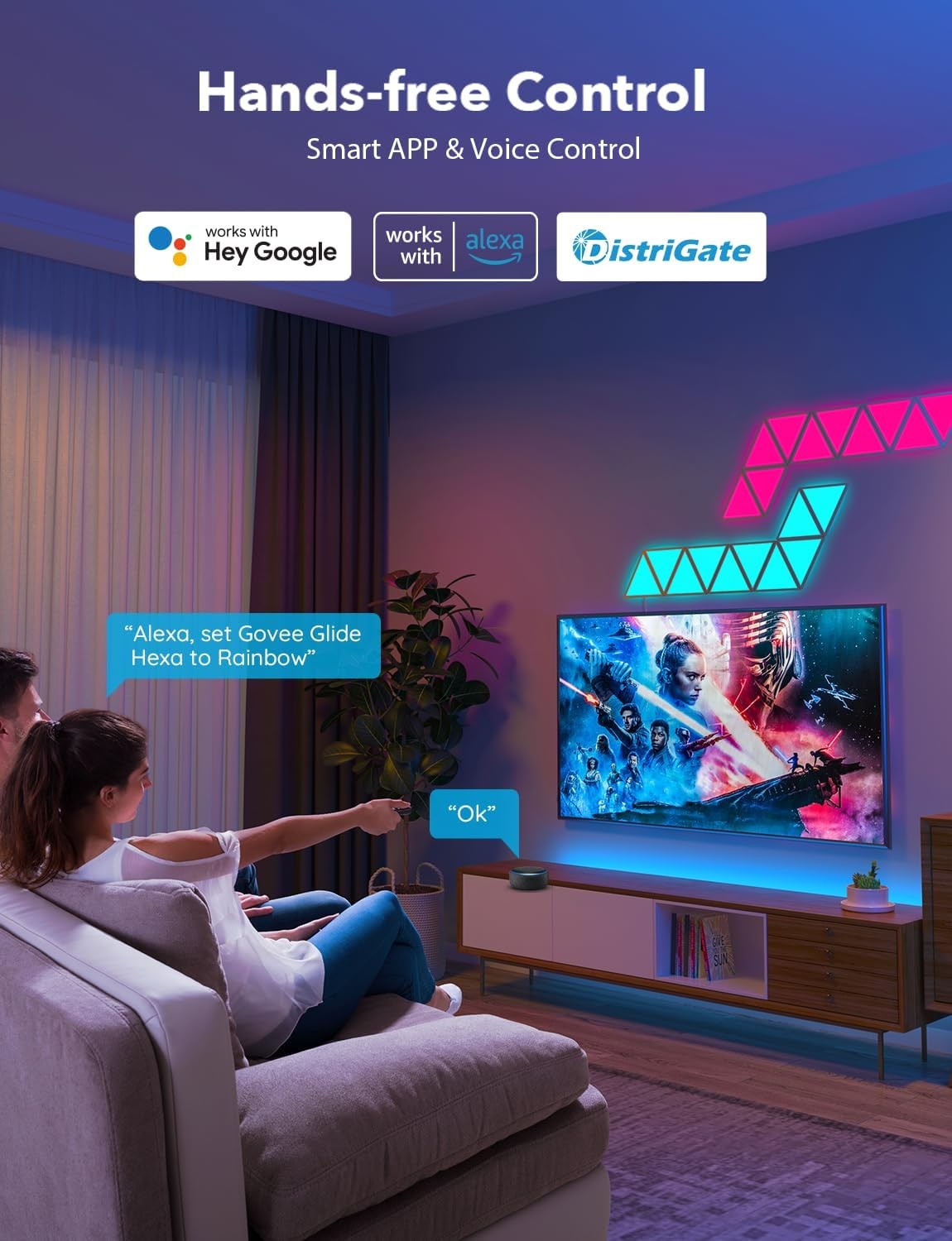 Enhance any space with RGBIC triangle light panels featuring music and DIY modes.