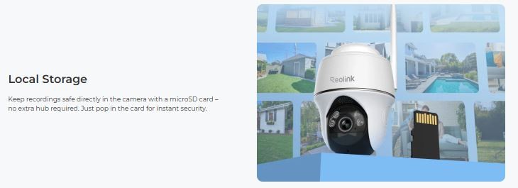 - Solar : Powered by Reolink Solar Panel