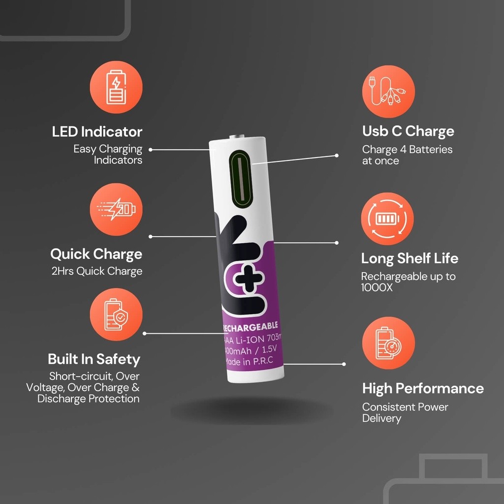 - Uniross USB-C Rechargeable AAA Battery (Pack of 4) is designed for those who demand reliable, consistent power
