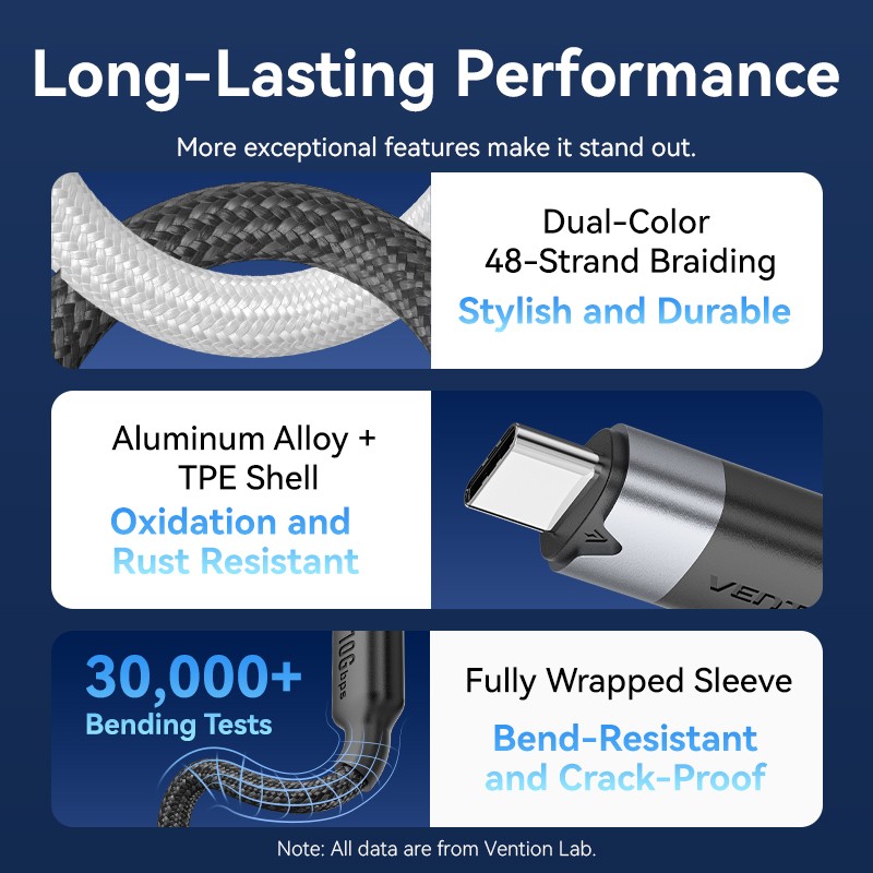 Vention IT Cable USB-C 3.2 Gen2 M-M 1.0m Braided Aluminum White - TRGWF - USB-C 3.2 Gen2 M-M 1.0m Braided Aluminum White