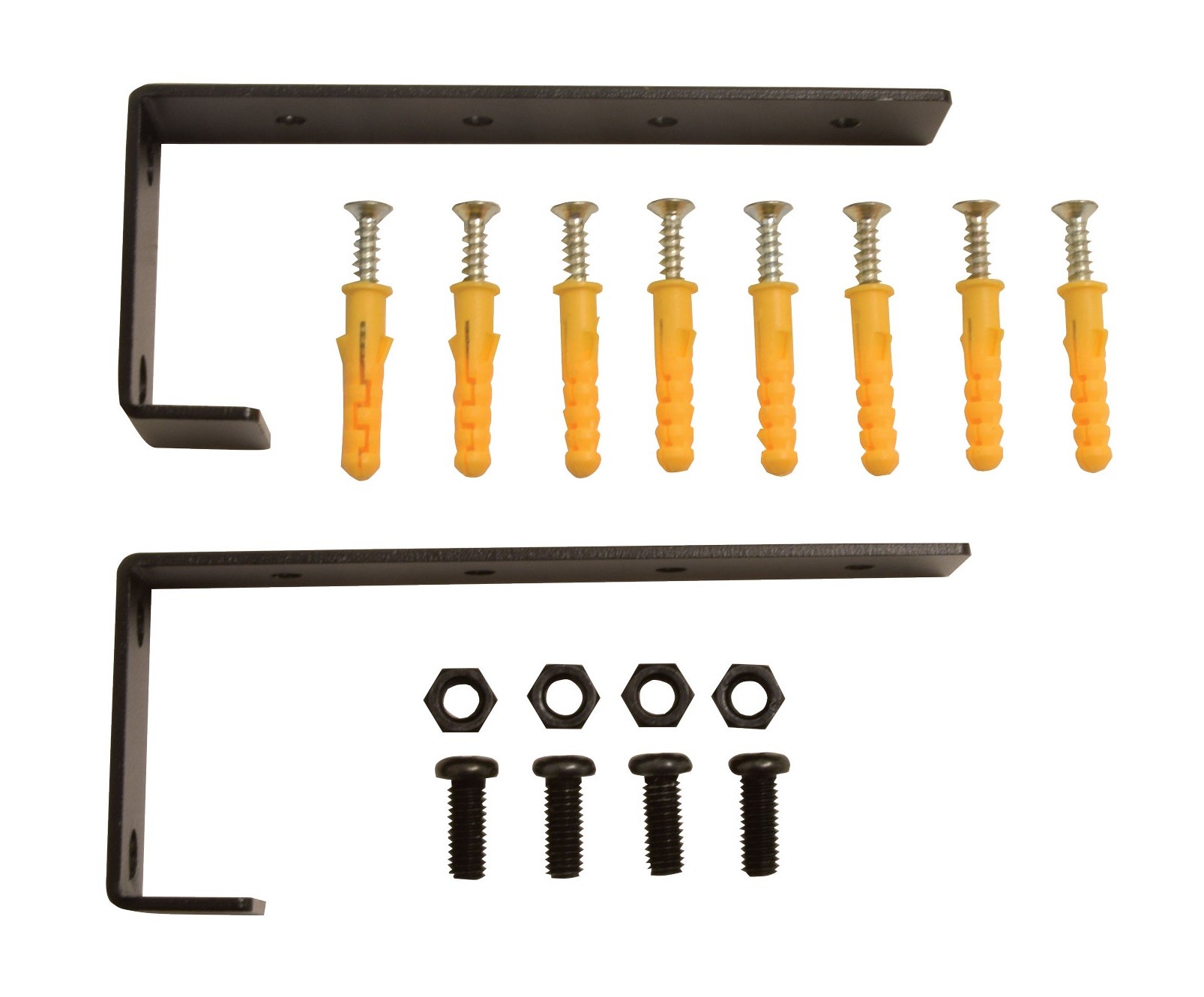 RACK-ITs are a straightforward solution for fixing rack-mount equipment vertically against a wall or even under a counter-top. Save the additional cost and bulk of rack cabinets and simplify installation work for individual rack-mountable equipment. Supplied in pairs - one for each side - an appliance can be simply suspended by its own rack-ears by measuring 485mm between the outer edge of each of the RACK-ITs and fixing at level height to a wall or upright surface. Screws and wall plugs are provided for fixing each bracket and M6 screws and nuts are provided for mounting the rack equipment to each bracket. Alternatively, use an additional pair of RACK-ITs to support the rear of deeper or heavier rack equipment, enabling installation under a counter top or work surface. A cost-effective solution for mounting rack units whilst keeping all controls and connections accessible.