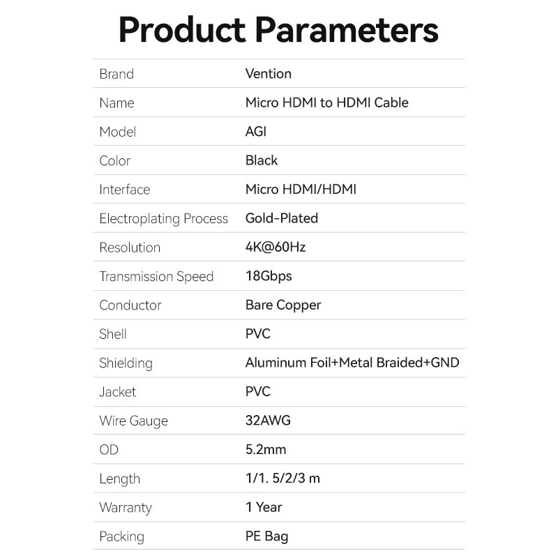 Vention HDMI to HDMI Micro Cable, 3.0m, HDMI 2.0, delivers crystal-clear picture quality and seamless connectivity for viewing and gaming.