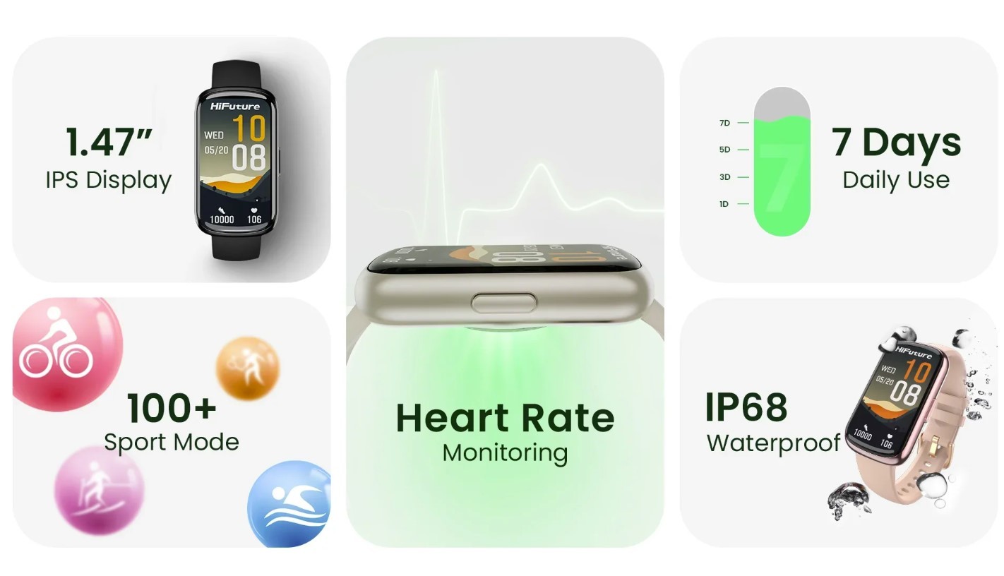 - Brilliant Display for Every Moment: Get ready to be amazed by the HiFuture EVO2's stunning 1.47" IPS display. It’s designed to make every detail pop, the vibrant colors and sharp clarity.