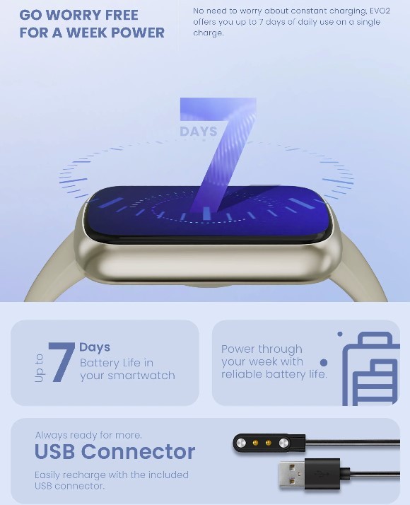 - Express Your Style: Choose the look that suits you best. Our EVO2 smartwatch comes in three stylish colors: classic black, elegant pink, and sophisticated beige.