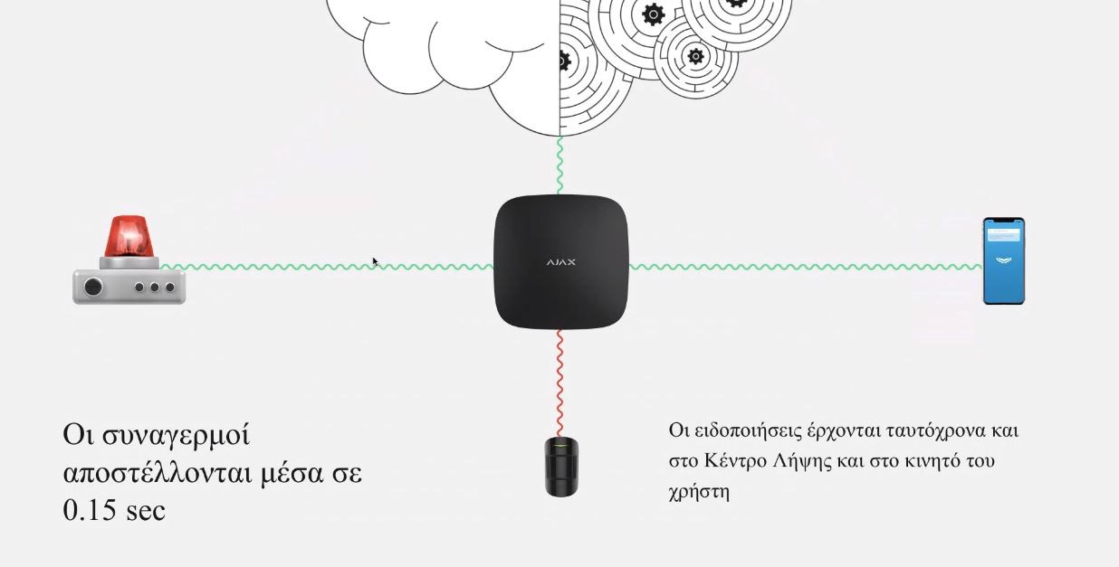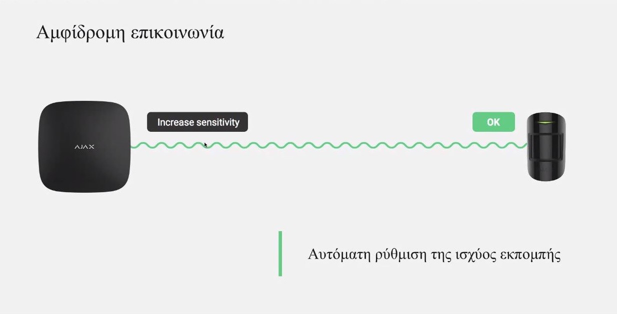 - The device uses Jeweller radio technology to monitor the detectors and ensure a quick response to danger. It switches the entire system to clear frequencies during jamming. The device is protected against viruses at software level