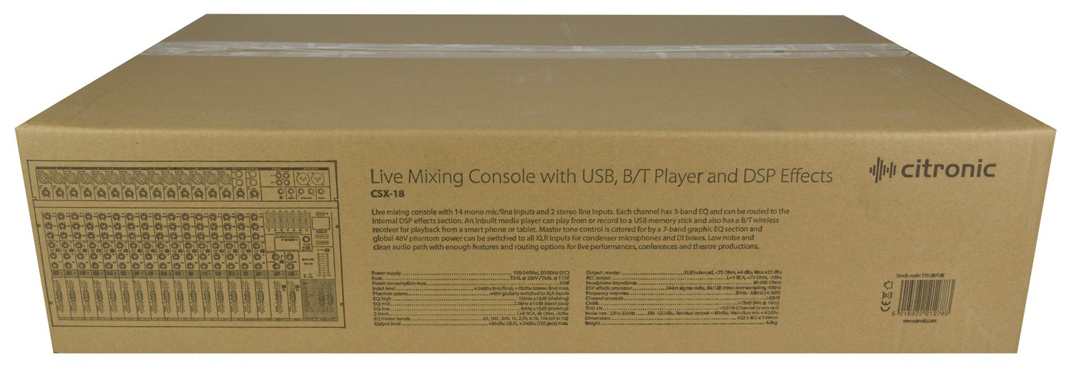 Citronic Live Mixer - CSX18 - 18 Channels USB BT DSP 170.885UK
