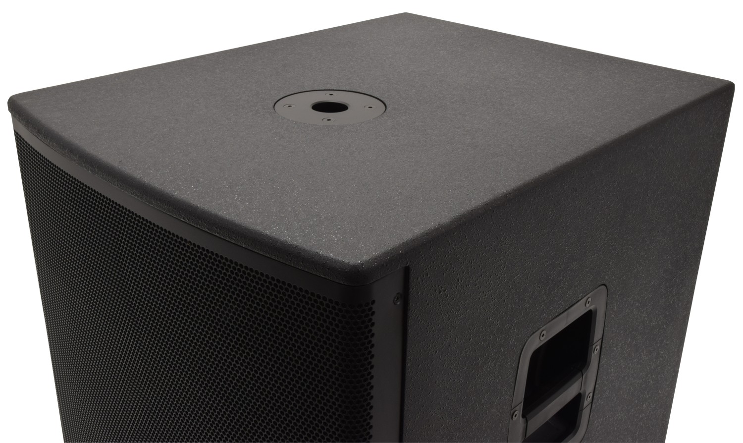 Lightweight passive subwoofer with minimal footprint and capable power handling. 15mm MDF cabinet with integral side handles and a 35mm socket.