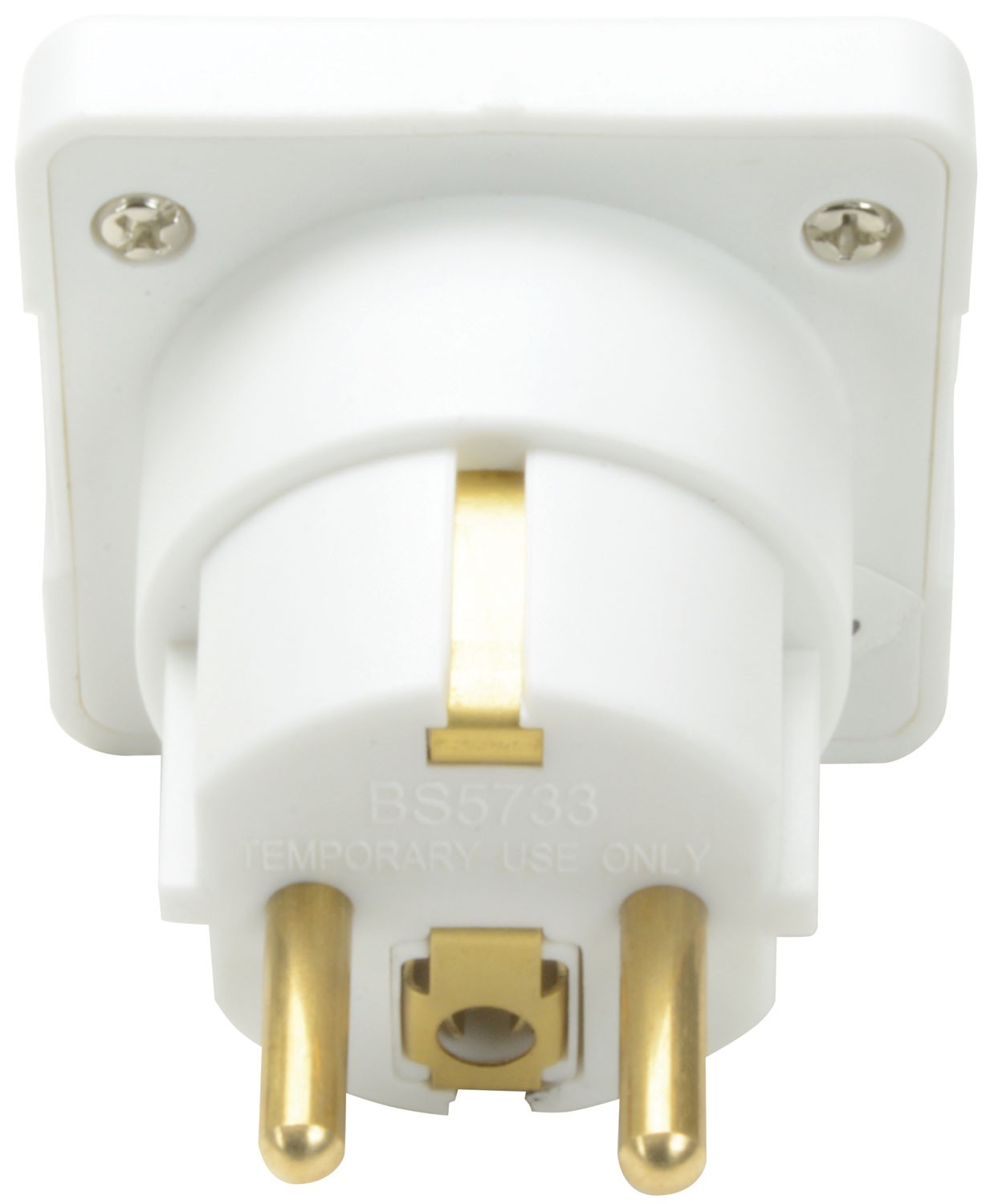 A mains adaptor to allow items fitted with a standard UK 3 pin plug to be used in a European Schuko socket. An essential piece of equipment when travelling to Europe on holiday or business.