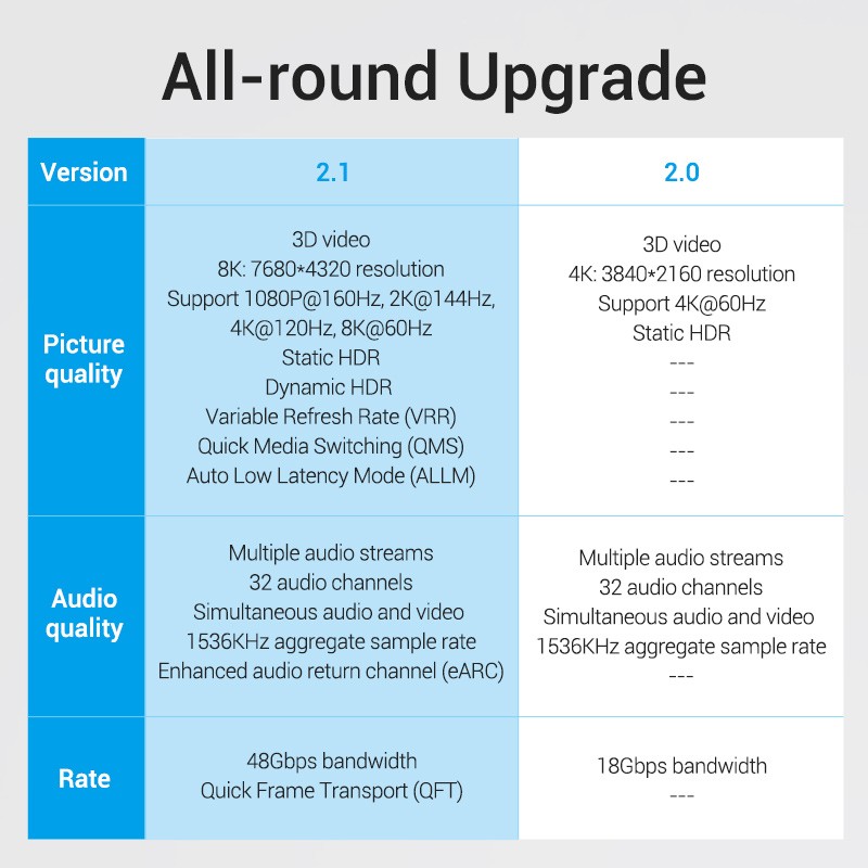 - Unmatched Visual Experience: With a 48Gbps bandwidth, VENTION's HDMI 2.1 cable delivers stunning 8K@60Hz and 4K@120Hz resolution, making it ideal for gamers, cinephiles, and home theater enthusiasts.