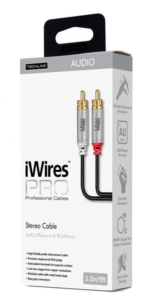 Premium Techlink iWiresPRO 2RCA to 2RCA Cable delivering high-fidelity stereo audio in a 3.0 m length.
