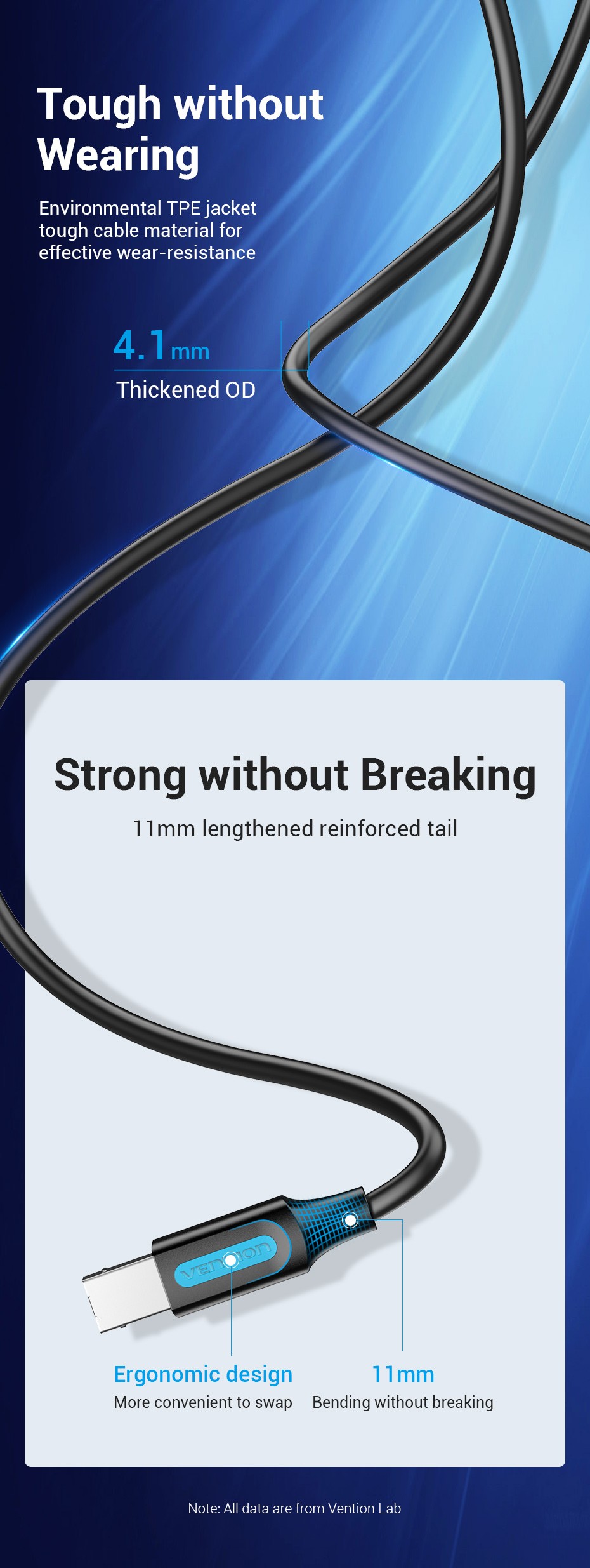 - Durable and Long-Lasting Construction: Crafted with a robust environmental TPE jacket and a reinforced 4.1mm outer diameter, this cable offers enhanced resistance to wear and tear. The added 11mm reinforced tail is specifically designed to provide extra strength, effectively preventing breakage even after extensive bending and repeated plugging.