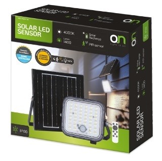 GBC ON LED Dimmable Solar Floodlight - with Panel, Remote Control & PIR - 1400 Lumens