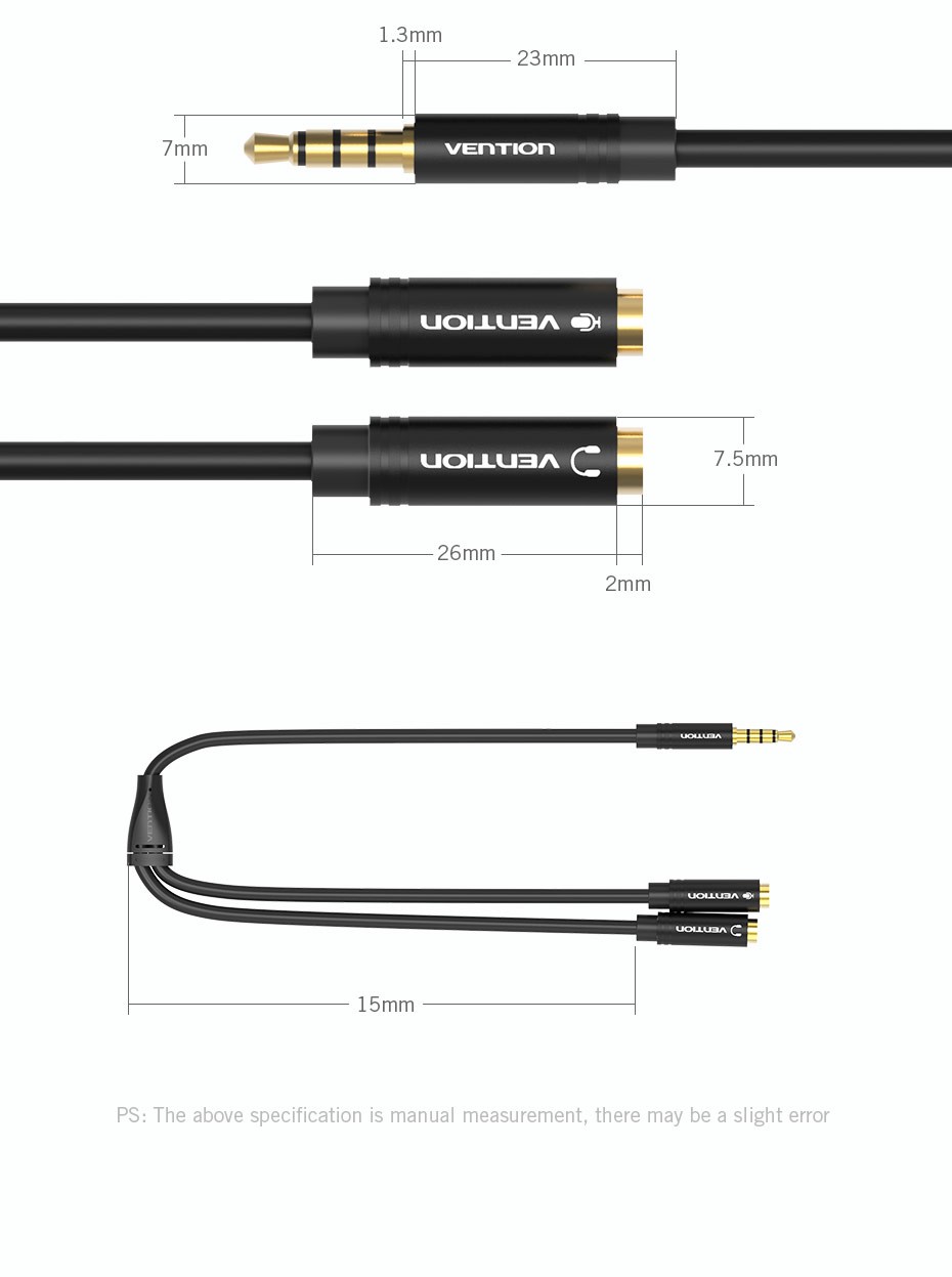 3.5mm male to two 3.5mm female splitter cable, 0.3m length. Enamelled copper core for high-fidelity sound; gold-plated plugs for enhanced signal transfer.