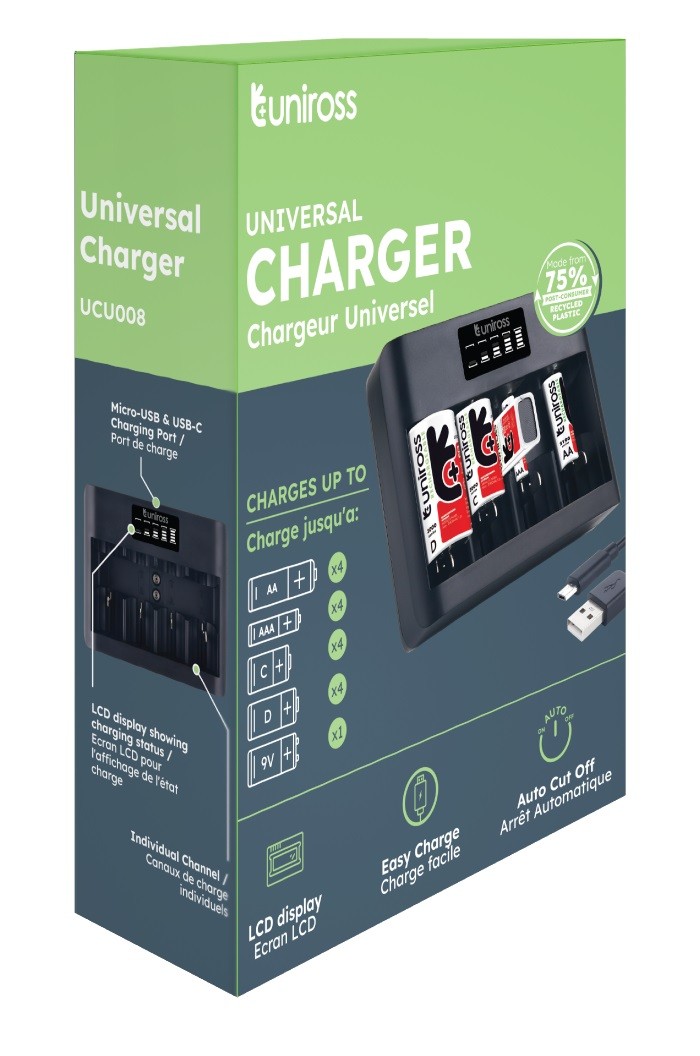 Uniross Fast 2hr USB Charger for AA AAA C D 9V - UCU008 - Fast 2hr USB Charger for AA AAA C D 9V