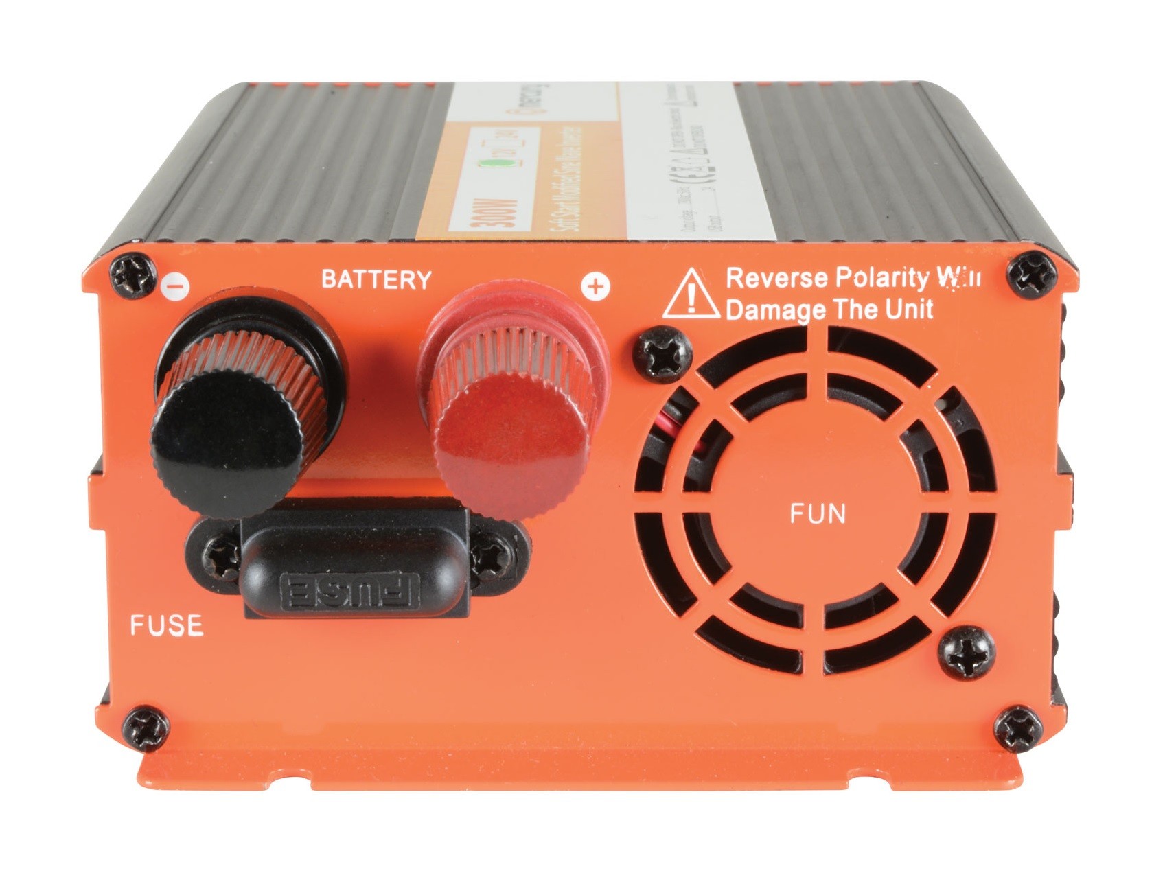 This high efficiency power inverter use a modified sine wave to power 230V mains equipment from a 12V battery or DC power supply. Perfect for use while camping, in commercial vans/lorries, or as a means to convert charged batteries for back-up power in case of a blackout. Ideal for use with TVs, lighting, fans, kettles and many other everyday appliances.